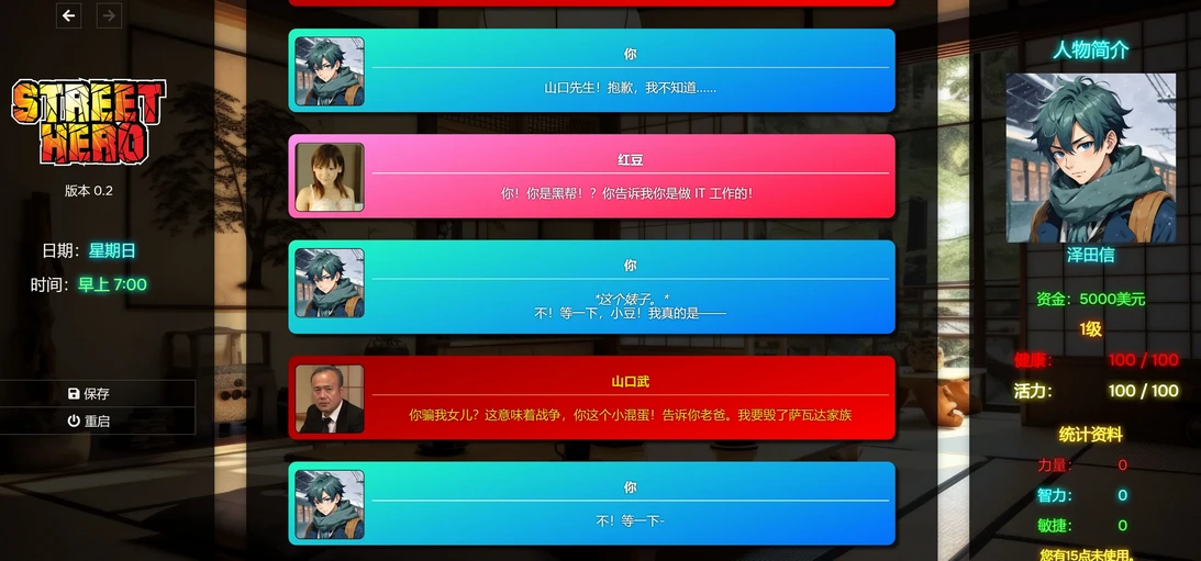 这是一款主打日式世界观+黑帮+养成玩法的HTML游戏
